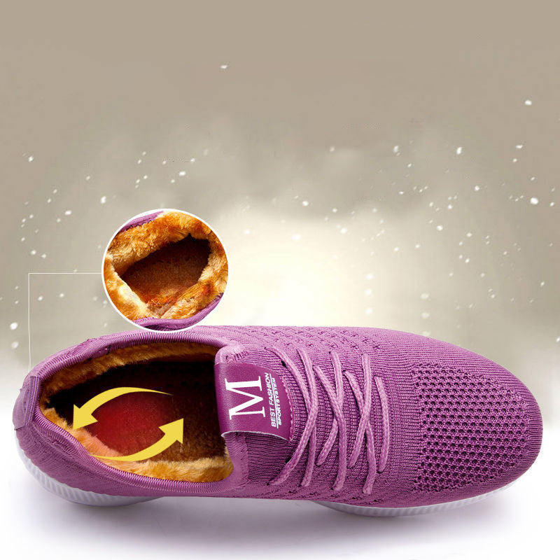 Hatmeo Thickened Anti-Slip Cotton Shoes for Elderly Women