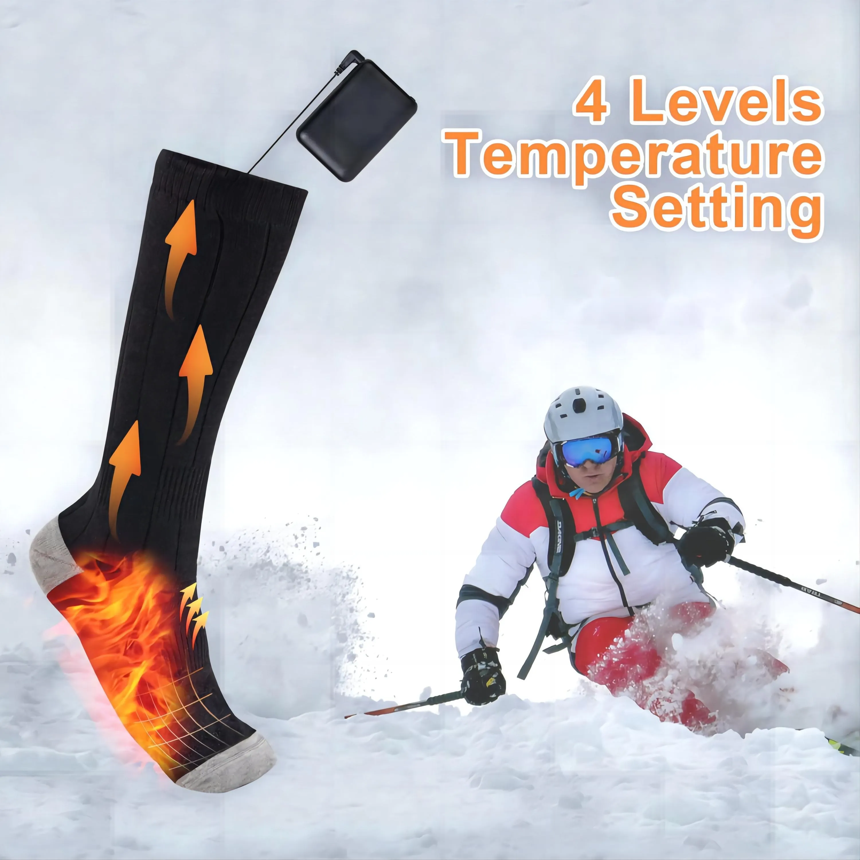 I sometimes have to sit in a chair for long periods, and my feet are always freezing, so these heated socks are a lifesaver. I had an old pair before, but they were thick and uncomfortable, while these are very comfortable. I like that the battery compartment can be stored inside the sock or removed, and charging is very convenient. At first, I set the temperature to the highest setting, but quickly switched to the second setting because it felt like being in a sauna. The second setting was warm and comfortable, but the first setting was just as good. At home in the evening, I set the temperature to the first setting, and they kept me warm for a long time.