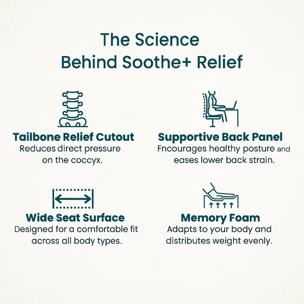 After years of back problems, I finally found something that actually works. The combination of coccyx relief and lumbar support is exactly what I needed.