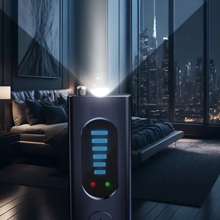 Great for peace of mind. This tiny detector detects wifi signals, GPS trackers, rf signals. It has a built in flashlight, view finder, hanging cord for alarm which is what I've used the most. Hang it on the door knob and it squeals if it is moved. Once you understand what all it does & how to use it is amazing.