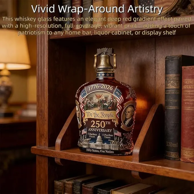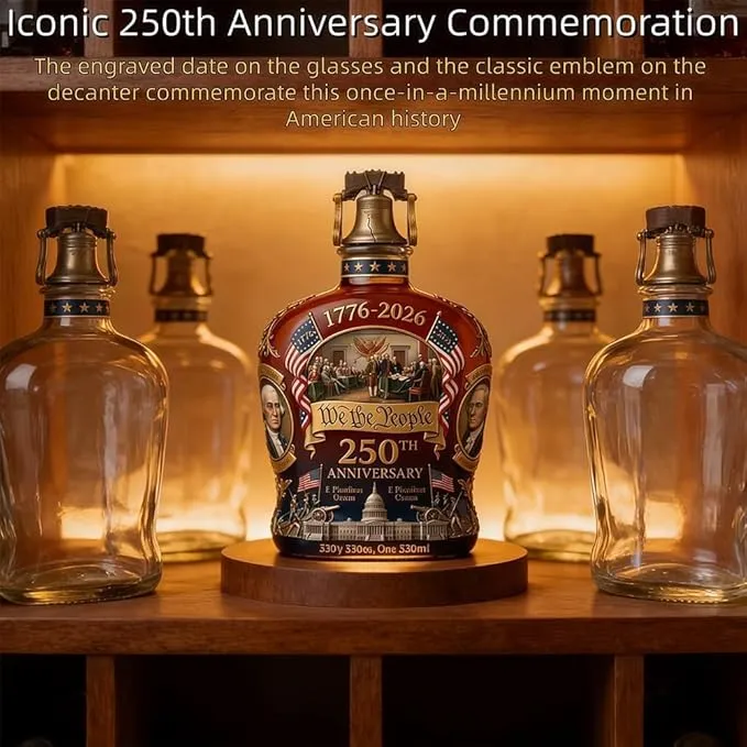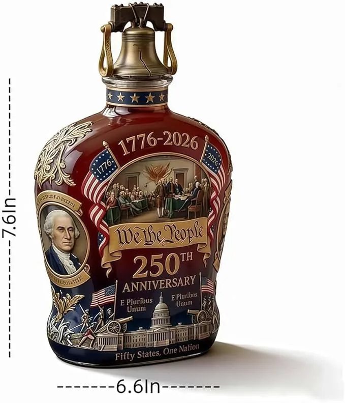 I bought this decanter to mark the 250th anniversary, and it honestly feels like more than just a bar accessory. Every time I look at it, I’m reminded of what that year represented — not just history, but something personally significant. The design is thoughtful, from the "We The People" scroll to the founding-era imagery. It sits on my shelf with weight — literally and symbolically. If you're someone who wants to feel the year, not just live through it, this piece delivers.