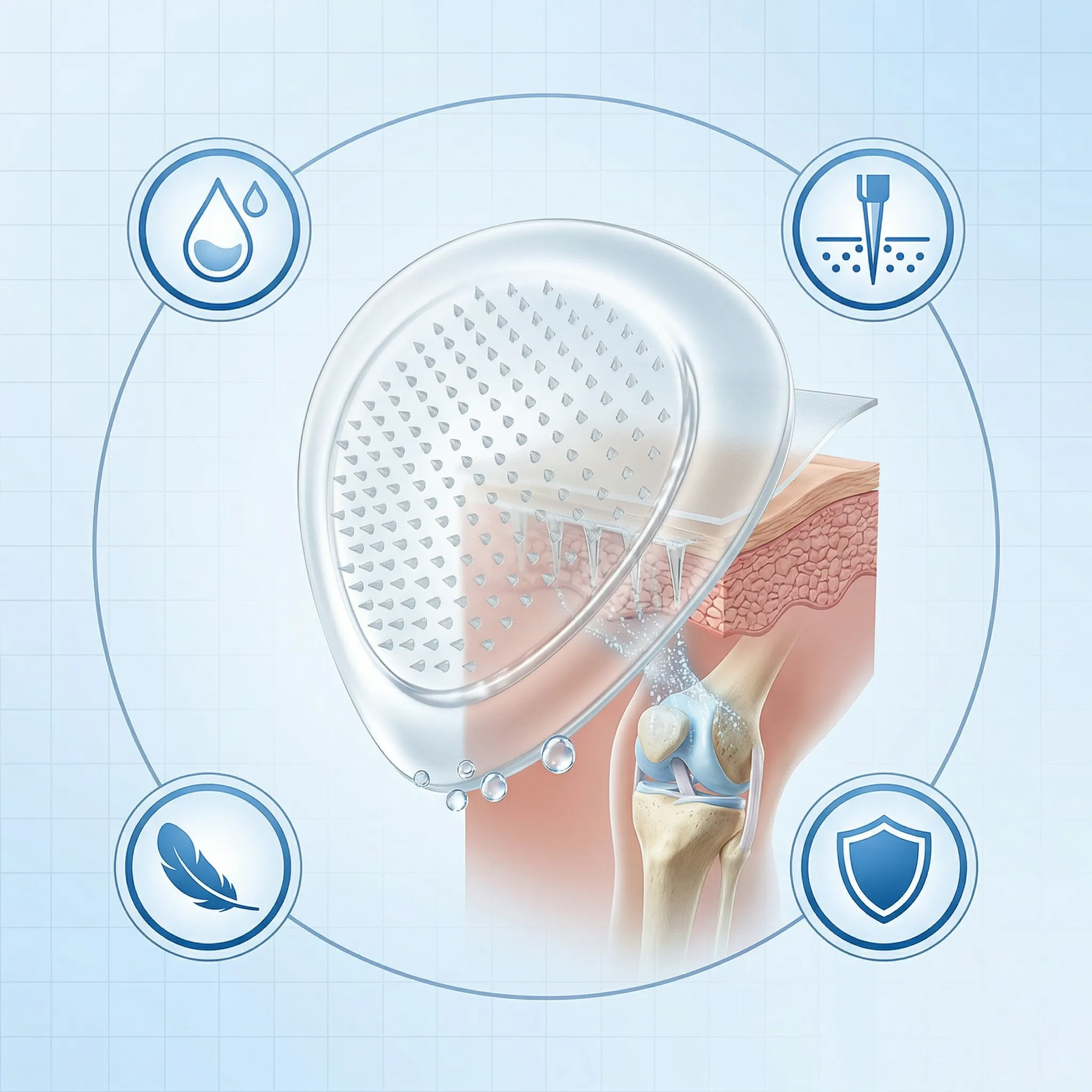 Hatmeo Hyaluronic Joint Patch 4PCS for Knee & Back Soothing-Targeted Micro Needle Patches, Ginger & Peppermint Infused, Long-Lasting Joint Care, Water-Resistant Microdart Patch for Pain Relief.